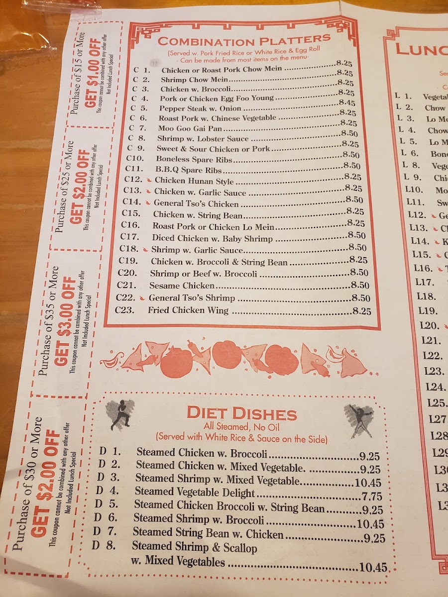The luncheon specials, including staples like Vegetable Lo Mein and Boneless Spare Ribs, offer a casual way to enjoy familiar flavors in a relaxed setting. Whether stopping by for a quick bite or ordering in for a cozy evening at home, the menu’s mix of hearty and lighter dishes fits well with the restaurant’s friendly, neighborhood atmosphere.