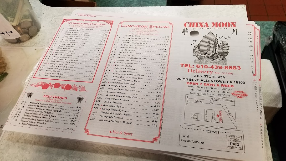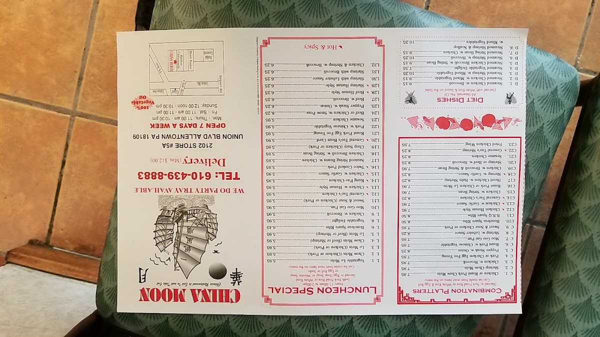 Food here tends to be traditional and flavorful, creating a straightforward and comforting dining experience that many locals come back to regularly. The balance of familiar tastes and variety ensures there’s something to enjoy throughout the day, making China Moon a dependable choice for Chinese cuisine in Allentown.